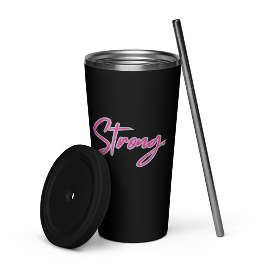 Queen Power Tumbler with Straw - Strong Against Breast Cancer